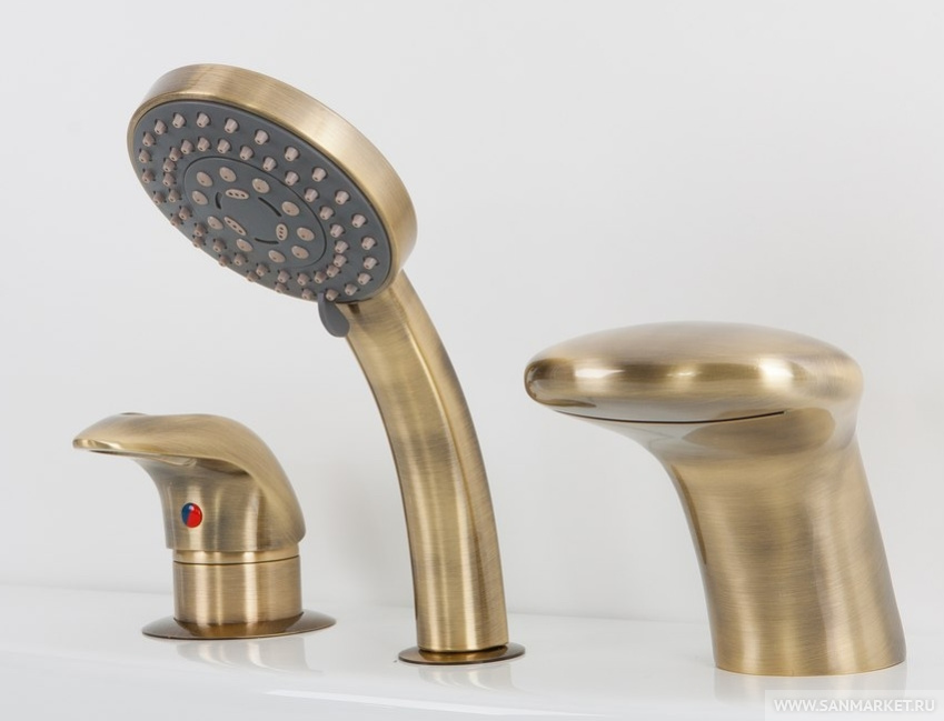 Каскадный смеситель производителя ALPEN Cobra на три отверстия предназначен для врезки на борт акриловой ванны. Данная модель существует в трех цветах: бронза, хром и золото.