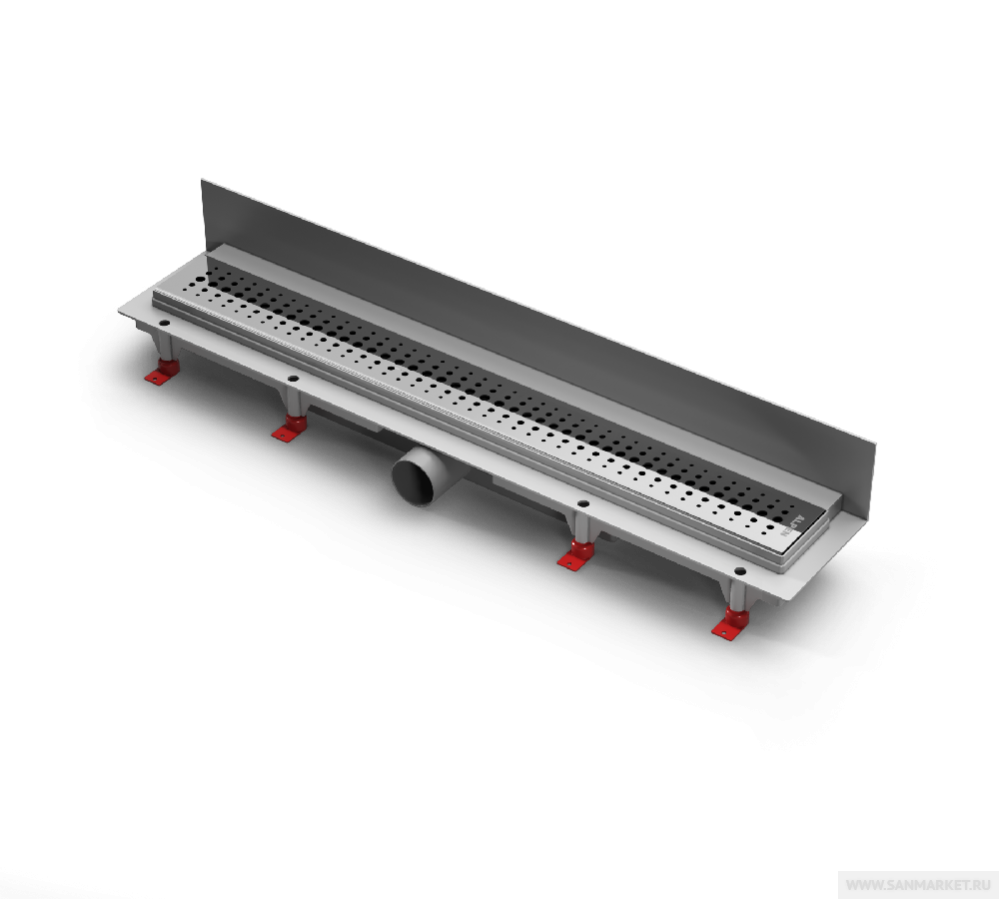 Водоотводящие желоба это атрибут для современного интерьера ванных комнат, сауны и зоны отдыха. Их преимуществом является простота установки, обслуживания и эксплуатация базбарьерной зоны. Монтаж производят в близи стен. Нижняя часть изготовлена из ПП и ПС, решётка изготовлена из нержавеющей стали DIN 1.4301 K3 с возможной нагрузкой до 300 кг. Минимальная высота установки составляет 65 мм, желоб с регулировкой высоты.