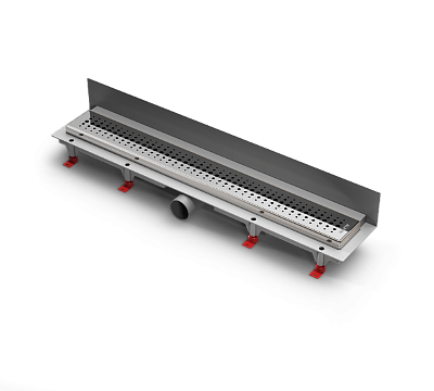 Водоотводящие желоба это атрибут для современного интерьера ванных комнат, сауны и зоны отдыха. Их преимуществом является простота установки, обслуживания и эксплуатация базбарьерной зоны. Монтаж можно производить как на открытых участках боксов и кабин, так и в близи стен. Нижняя часть изготовлена из ПП и ПС, решётка изготовлена из нержавеющей стали DIN 1.4301 K3 с возможной нагрузкой до 300 кг. Минимальная высота установки составляет 65 мм, желоб с регулировкой высоты.