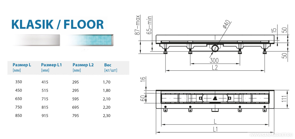 Водоотводящие желоба это атрибут для современного интерьера ванных комнат, сауны и зоны отдыха. Их преимуществом является простота установки, обслуживания и эксплуатация базбарьерной зоны. Монтаж можно производить как на открытых участках боксов и кабин, так и в близи стен. Нижняя часть изготовлена из ПП и ПС, решётка изготовлена из нержавеющей стали DIN 1.4301 K3 с возможной нагрузкой до 300 кг. Минимальная высота установки составляет 65 мм, желоб с регулировкой высоты.