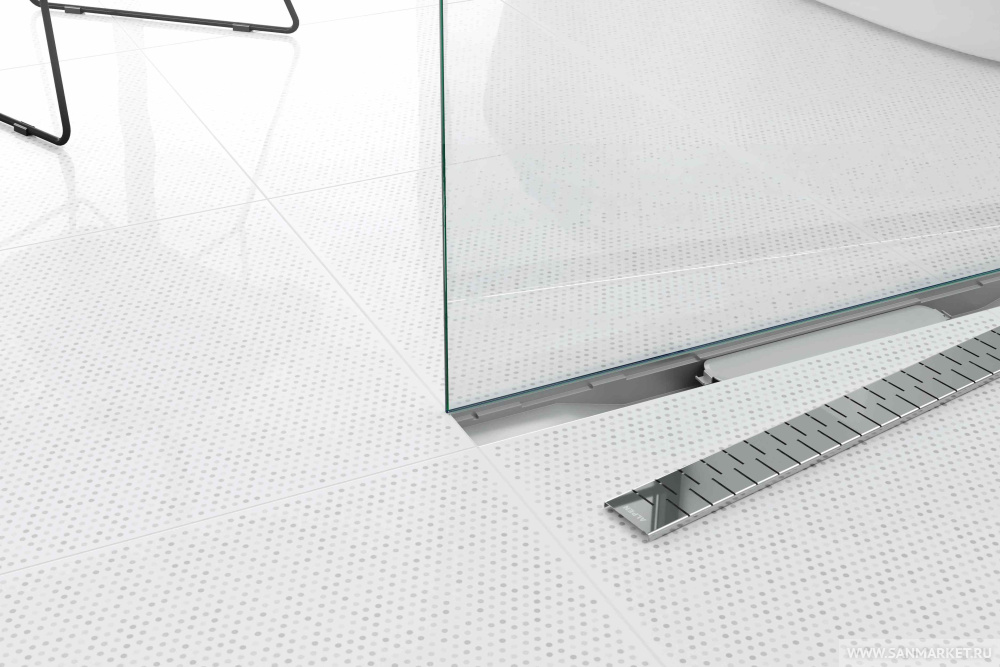 Водоотводящие желоба это атрибут для современного интерьера ванных комнат, сауны и зоны отдыха. Их преимуществом является простота установки, обслуживания и эксплуатация базбарьерной зоны. Монтаж можно производить как на открытых участках боксов и кабин, так и в близи стен. Нижняя часть изготовлена из ПП и ПС с возможной нагрузкой до 300 кг. Минимальная высота установки составляет 65 мм, желоб с регулировкой высоты.