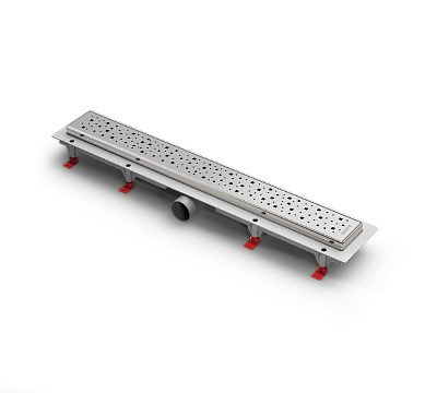 Водоотводящие желоба это атрибут для современного интерьера ванных комнат, сауны и зоны отдыха. Их преимуществом является простота установки, обслуживания и эксплуатация базбарьерной зоны. Монтаж можно производить как на открытых участках боксов и кабин, так и в близи стен. Нижняя часть изготовлена из ПП и ПС, решётка изготовлена из нержавеющей стали DIN 1.4301 K3 с возможной нагрузкой до 300 кг. Минимальная высота установки составляет 65 мм, желоб с регулировкой высоты.