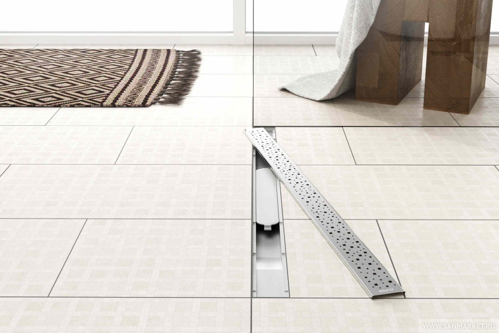 Водоотводящие желоба это атрибут для современного интерьера ванных комнат, сауны и зоны отдыха. Их преимуществом является простота установки, обслуживания и эксплуатация базбарьерной зоны. Монтаж можно производить как на открытых участках боксов и кабин, так и в близи стен. Нижняя часть изготовлена из ПП и ПС с возможной нагрузкой до 300 кг. Минимальная высота установки составляет 65 мм, желоб с регулировкой высоты.